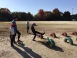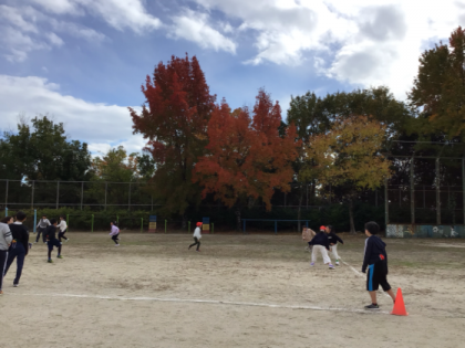 11月26日(水) 写真左は、2年生体育の様子です。ボールゲームが進化して的に...