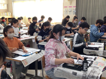 書き初め大会に向けての練習が始まっています。みんな、手本をよく見て書いていました...