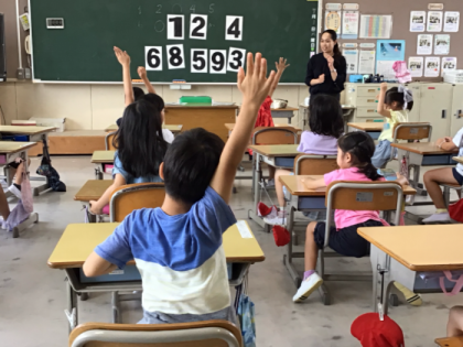 1年生は外国語活動です。数字を英語で楽しそうに言っていました。6年生は書写です。...