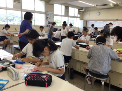 7月8日(火) 今日は5年生家庭科で裁縫実習にボランティアの方にお越しいただき...