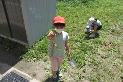 「たんぽぽ」という教材文を学習をしています。教材文に書いてあることを確かめるために、運動場のたんぽぽを使って、花や茎、根を観察することにしました。