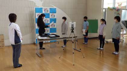 今日の集会は、委員会委員長・副委員長の任命、校長先生のお話、「いいとこ めもっとこ賞」の発表でした。校長先生からは、『あいさつ・時間・そうじ』の3つのことをしっかり取り組んでいこうとお話がありました。「いいとこ めもっとこ賞」は、みんなのために行動した14名の子と6年生の『いいとこ』を紹介しました。