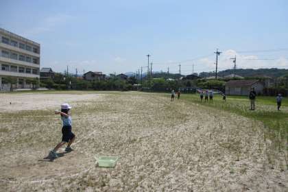 運動場と体育館に会場を分けて体力テストを行いました。全学年、2時間目に記録をとりました。ボール投げや反復横とびなどの種目を真剣に行うことができました。