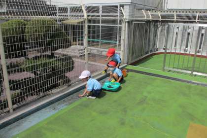 全校で協力してプール掃除をしました。どの学年も、一生懸命にできました。