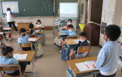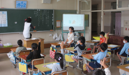 かたかなの学習をしています。今日の授業では、かたかなで書く国の名前を出し合いました。子どもたちはいろいろな国の名前を知っていて、たくさんの出すことができました。