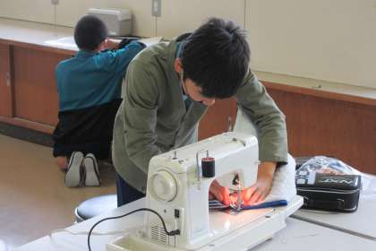 ミシンを使ってトートバッグを制作しています。久し振りに使うミシンなので、作り始めたときにはうまくいかないことが多く、困っていました。作っていくうちにだんだんやり方を思い出し、少しずつトトバックの制作が進んでいます。