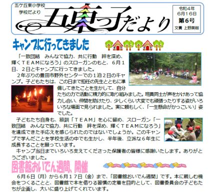 学校だより 学年通信 6/17発行 公開日 2022/06/17 更新日 2022/06/17 お知らせ 「五東っ子だより6」をアップしました。 ↓ 五東っ子だより 6 五東っ子だより 7月の予定 最新の学年通信はこちらです。 ↓ 2年 3年 4年 5年 6年