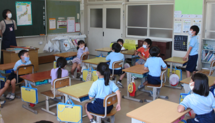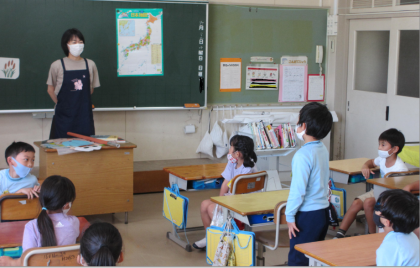 「言いつたえられて いる おはなしを しろう」の学習で、神話が紹介されています。そこで、司書教諭の先生に「日本の神話」についてお話していただきました。神話では、いろいろな神さまが日本の国づくりをしたことが書かれています。そのお話の本が図書室にはあります。神話のように言い伝えられているお話の本も興味をもってほしと願っています。