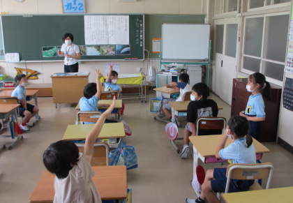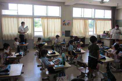 教育委員会の先生に学校の様子を見ていただきました。子どもたちは、暑さに負けず、一生懸命に授業を行うことができました。がんばっている子どもたちの姿をたくさんほめていただけました。