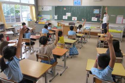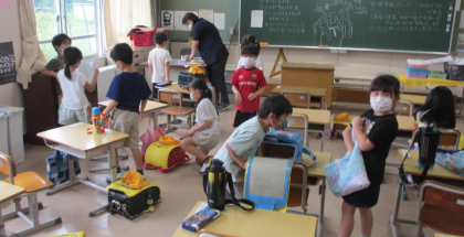 久し振りの登校日になりました。朝は激しい雨の中での登校になり、とても心配しました。子どもたちは、元気に登校できました。学級での活動時間は短かったですが、課題の提出のあと、お互いに夏休みのことについて話す時間を少しとることができました。