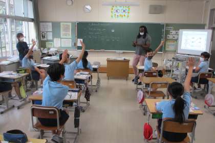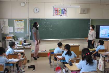ALTの先生の英語の発音・会話のお手本・練習、外国語ボランティアのきめ細やかな支援、とても助かっています。