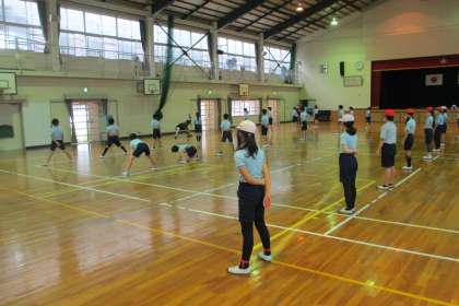 体育の時間に運動会の準備を少しずつ進めていきます。5・6年生は、ソーラン踊りの練習を始めました。