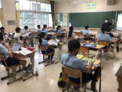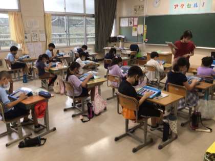 4年生は道徳、5年生は算数、6年生は国語を頑張っていました。学習用タブレットで友達と意見を共有したり、難しい問題に挑戦したりと意欲的に取り組んでいました。