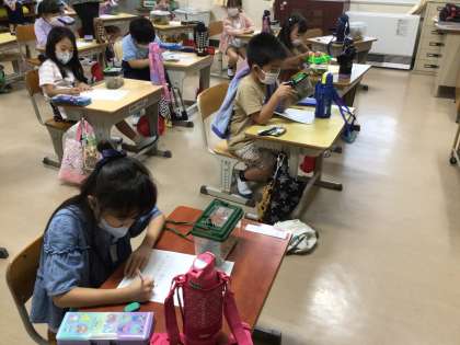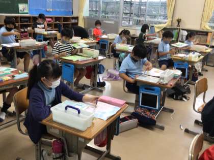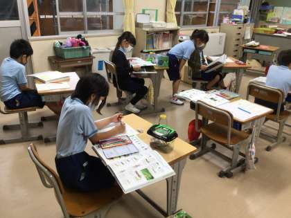 1年生と2年生は、それぞれ、昆虫の観察日記を書きました。3年生は図工の授業で、水彩画を描きました。子どもたちは、集中して、それぞれの活動に取り組んでいました。