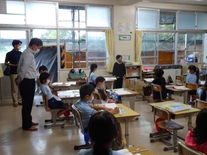 教育長山本浩司様に五ケ丘東小学校を訪問していただきました 9/26