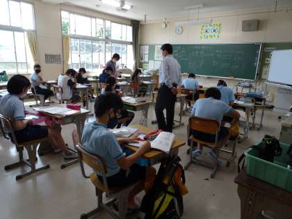 9月26日に教育長山本様に子どもたちの授業の様子を見ていただきました。「どの学年も一生懸命に授業に取り組んでいて、すばらしい」とほめていただきました。1年生の授業では、ボール遊びを一緒に行っていただきました。子どもたちは、大喜びでした。
