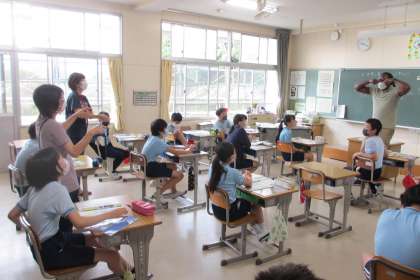 今日の外国語は、3・5・6年生にALTの先生に入っていただきました。ALTの先生の楽しい雰囲気とともに、元気よく授業を行うことができました。