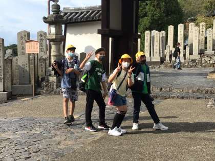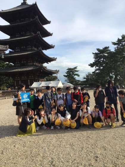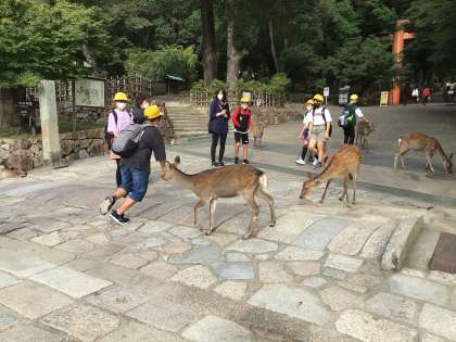 大仏を見た後、班で正倉院や二月堂等を見学し、鹿に鹿せんべいをあげました。興福寺の五重塔を見て、京都へ向かいます。