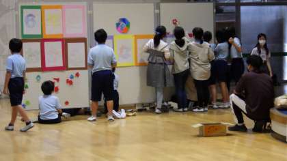 昨日、修修学旅行のお迎えのメッセージを5年生の子たちが用意してくれました。「おかえりなさい」の言葉だけでなく、奈良・京都という文字を切り抜いたり、色紙で飾りを作ったりと工夫してメッセージを用意しました。6年生は、修学旅行到着式の後、このメッセージ前で記念撮影して下校しました。6年生は、とても喜んでくれました。