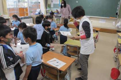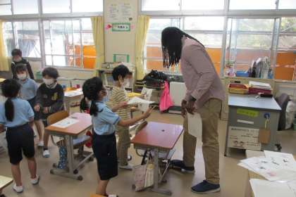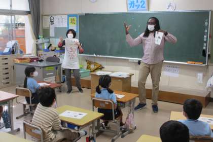 今日は、ALTの先生に来ていただき外国語をしました。英語でじゃんけんをして、プリントにかいてある絵を集めるゲームをしました。子どもたちは、積極的にALTの先生や担任の先生に相手をしてもらいました。楽しい外国語の時間になりました。