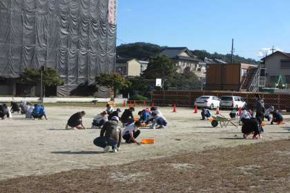 10月15日(土)にPTAクリーン活動を行いました。運動会の競技や競遊などをするトラック内の草を抜いていただいたり、運動場の草を刈っていただいたりしました。運動場がとてもきれいになり、2週間後の運動会を無事に開催できそうです。多くの方のご協力に感謝します。ありがとうございました。