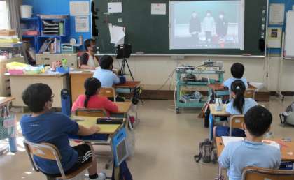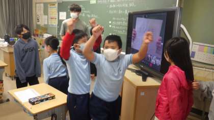 教室でジェスチャーゲームの解答をしました。各学年ともリモートで結ばれていて、どんな解答をしたかわかりました。いろいろな解答があり、それを聞くのも楽しい時間となりました。