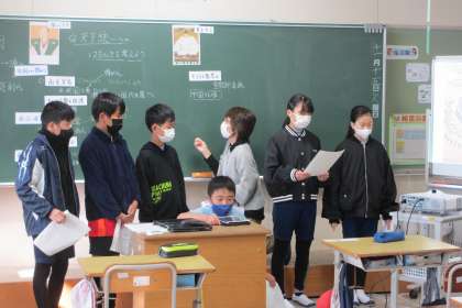 「戦国の世から天下統一へ」の学習で、天下統一に向けて織田信長、豊臣秀吉がどのような働きをしたのか考えました。授業の前半では、グループで調べたことを発表しました。後半では、発表したことをもとに信長、秀吉のつながりを考えました。授業を進めていくうちに、2人の武将の働きがつながって天下統一が成されたことがわかってきました。