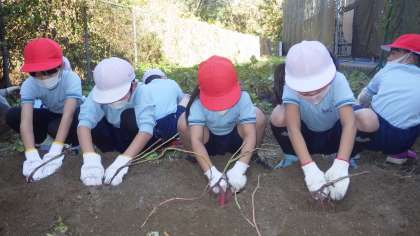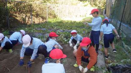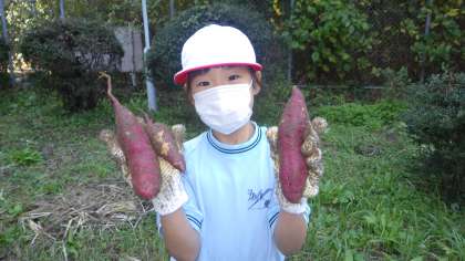 子どもたちが育ててきたサツマイモを収穫しました。大きなイモがたくさんできました。子どもたちは大喜びでした。