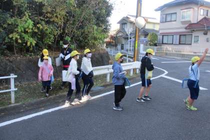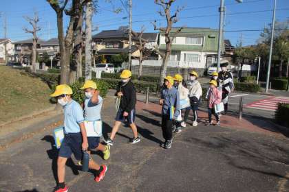 11月25日(木)に予定している「なかよしウォーク」コースの下見を5・6年生が行いました。初めての活動なので、5・6年生が実際に歩いて、コースの様子を確かめました。縦割りグループで安全に活動できるように、道路や歩道で注意するところ、公園やトイレなどの様子を見てきました。来週の活動がよいものにできるように、さらに準備を進めていきます。