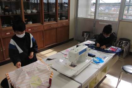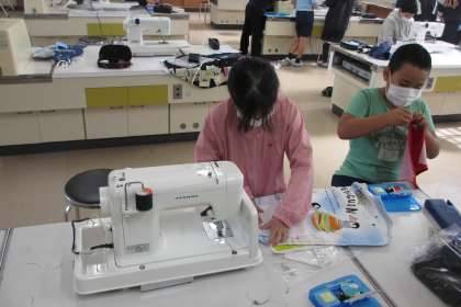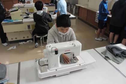 ミシンを使ってのエプロン製作が進んでいます。ミシンの使い方に慣れてきて、製作を始めたころとくらべて、とてもじょうずに縫うことができるようになってきました。エプロンの完成が楽しみです。
