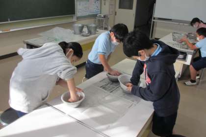 ビオトープで育てた米の学習が続いています。今日は、もみすりを行いました。子どもたちのアイディアでソフトボールを使ってみました。手作業なので簡単にはもみがとれません。米になるまでの作業を体験することで、たくさんのことを学んでいます。