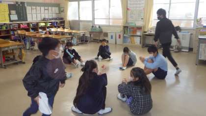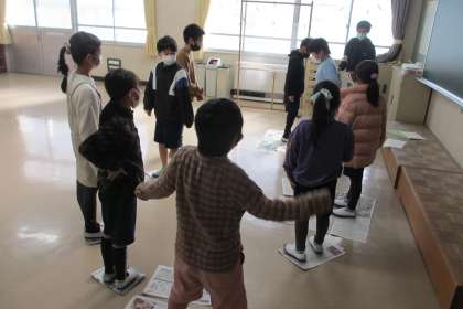 昨日、日課を変更して、給食後に縦割り遊びを行いました。先月のなかよしウォークに続いての縦割り活動になりました。今年度、初めての実際に集まっての縦割り遊びでした。5・6年生が考えたゲームを楽しく行いました。