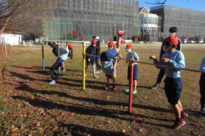 逆上がりの練習をしました。グループに分かれて、お互いにアドバイスをしたり、うまく回れる子のやり方を見てお手本にしたりして練習しました。少しずつやり方がわかってきました。