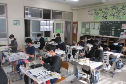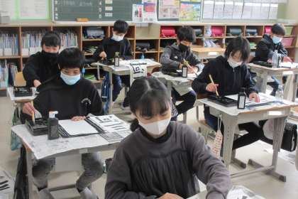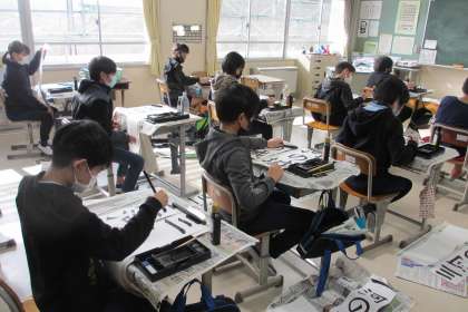 書き初めの字「三河の城」を練習しました。学校で練習できる時間は、今日と来週の2回です。真剣に取り組むことができました。