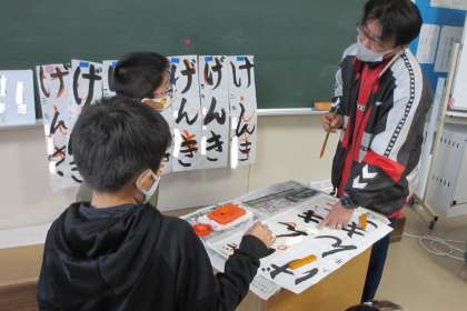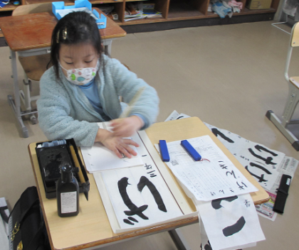 3年生は、初めて毛筆での書き初めになります。長い紙に書くのも今回初めてのことになります。最初は、とまどっていましたが、練習することで少しずつ書き方がわかってきました。子どもたちの字もだんだんとよくなってきました。