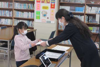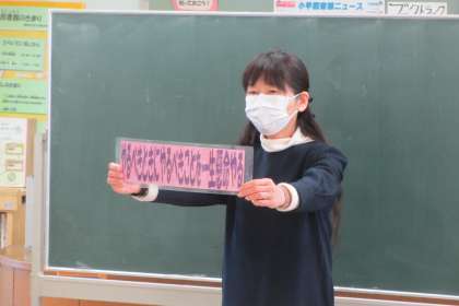 冬休み前の全校集会を行いました。図書室から各教室へリモート配信をしました。今日の集会は、「校長先生のお話、応募作品入選者の表彰、冬休みの過ごし方について」などを行いました。