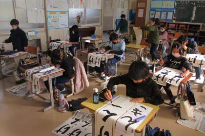 書き初め大会を行いました。今までで一番よい字を書こうとどの子も一生懸命に取り組みました。集中して真剣に書き初めをする子どもたちの姿、とてもすばらしかったです。