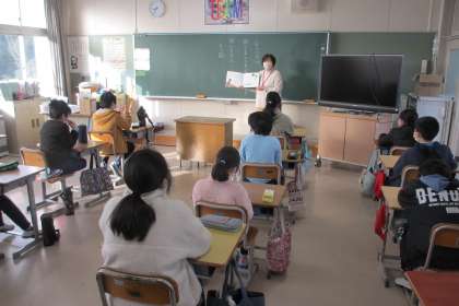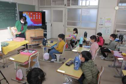 今年最初の読み語りになります。うさぎ年にちなんで、うさぎに関係するお話を読み語りしていただきました。