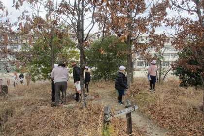 ビオトープ祭り2日目です。東っ子タイムに1・3・5年の子がビオトープに来ました。ビオトープの生き物や草木を探す「ビオトープビンゴ」、ビオトープの草木にまぎれている「ノームー君探し」をしました。ビオトープ祭りでは、楽しみながら生き物や草木を覚えることができます。