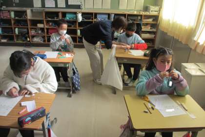 保健の授業を養護教諭の先生が行いました。体の変化と成長について学ぶ授業です。今日は、1年から2年、2年から3年、3年から4年と1年間ずつ自分の身長の変化をグラフにしました。グラフにしてみると、いろいろと気づくことが出てきました。気づいたことをプリントにどんどんと書きました。授業の後半では、気づいたことを出し合い、体の変化と成長について考えました。