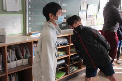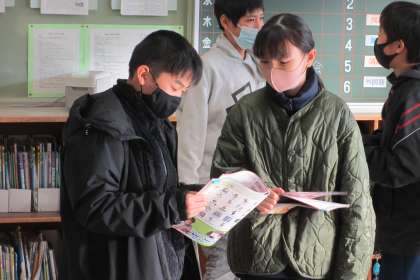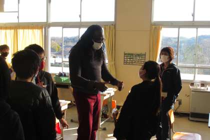 スモールトークで「What club do you want to job?」「I want to join the 〜club.(team)」の会話練習をしました。ALTの先生やボランティアの方にも積極的に練習相手になってもらいました。