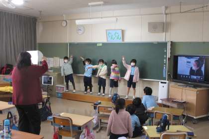 1年生「ジェスチャーゲーム」、2年生「まつりクイズ」の様子です。