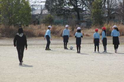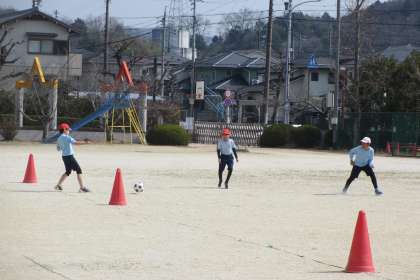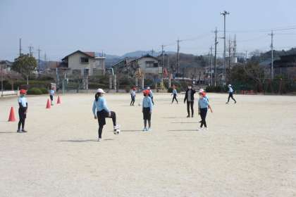 とても暖かい日になりました。今日は、各学年が体育を運動場で行いました。4年生は、ミニサッカーをしました。授業の後半は、楽しくゲームをしました。