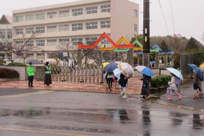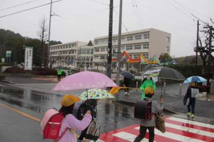 雨の中、あいさつ運動をしていただきました。今年度最後のあいさつ運動になりました。一年間ありがとうございました。