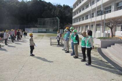 一斉下校で、1年間お世話になった見守り隊の方に感謝の気持ちを込めて、お礼の手紙を渡しました。