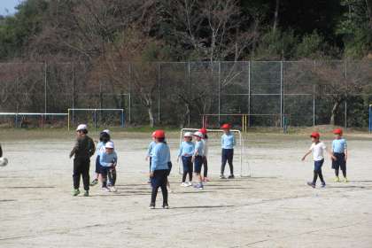 運動場で、ドッジボールやミニサッカーを楽しくできました。