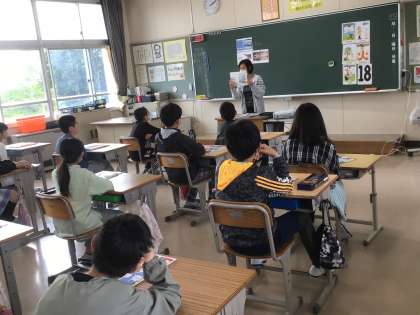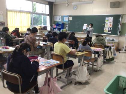 新しいALTのEna先生と外国語の授業です。先生の自己紹介を熱心に聞いたり、自分のname cardを作ったりしました。