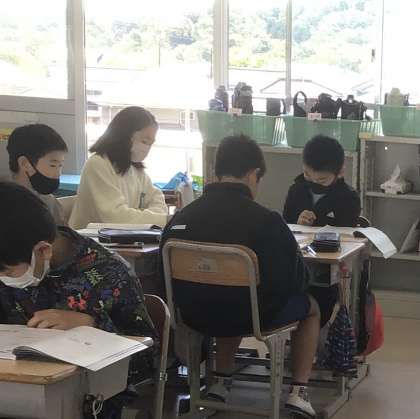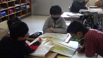 GW中でも、子どもたちは元気に、真剣に授業に取り組んでいます。1年生は、算数で大きさくらべを勉強しました。4年生は、地図を使って愛知県の勉強をしました。5年生は班で算数の勉強をしました。