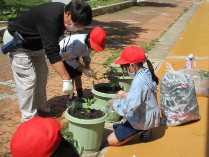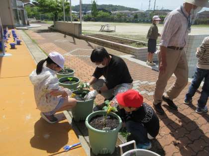 2年生が野菜の苗を植えました。自分の好きな野菜の苗を植えました。たくさん野菜ができるように、これからしっかりお世話してくれる思います。ボランティアでお手伝いしてくださった脇本さん、星野さん、牧野さん、ありがとうございました。