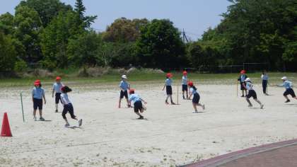 来週実施する体力テストに向けて、各学年で工夫を凝らして、練習に励んでいます。写真は3年生と4年生の様子です。